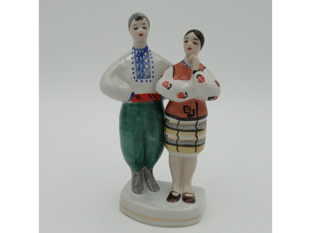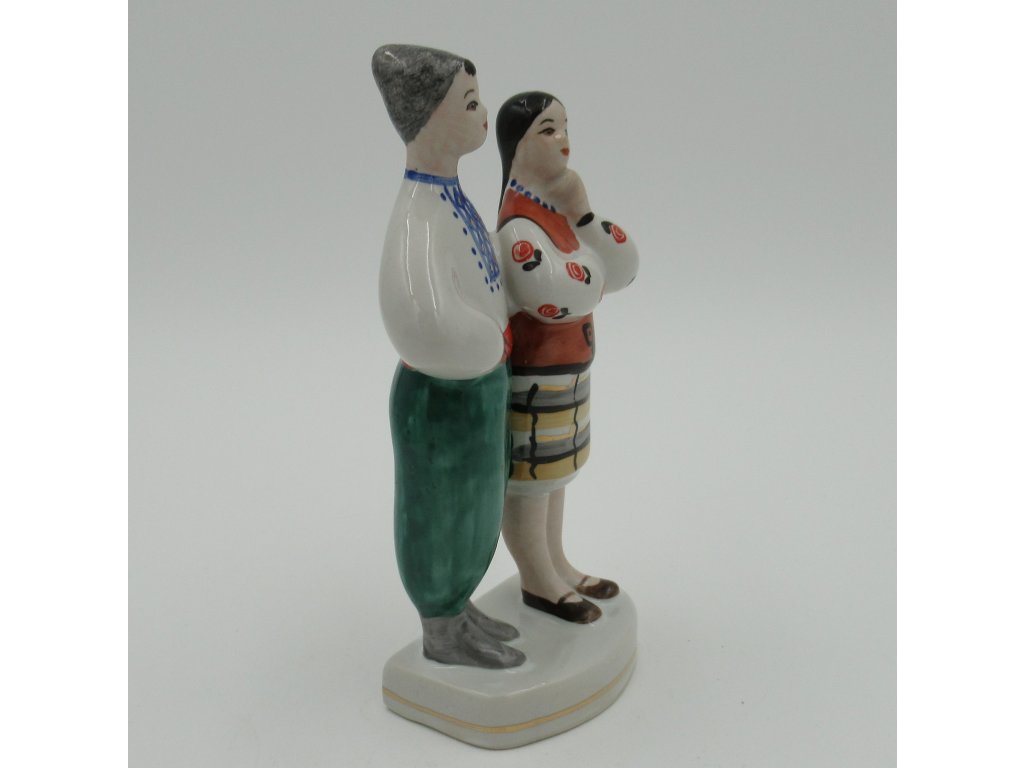Pár v lidovém oblečení. Sousoší. Porcelán.
